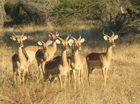 Eland, Blue Wildebeest, Impala, Kudu, Baboon, Gemsbok, Duiker, Warthog, Steenbok.